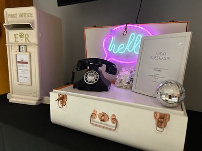 Hire our beautifully decorated Audio Guestbook complete with suitcase (white or rustic) and neon sign. We'll share with you a digital file after your big day with all your amazing voicenotes and well wishes.